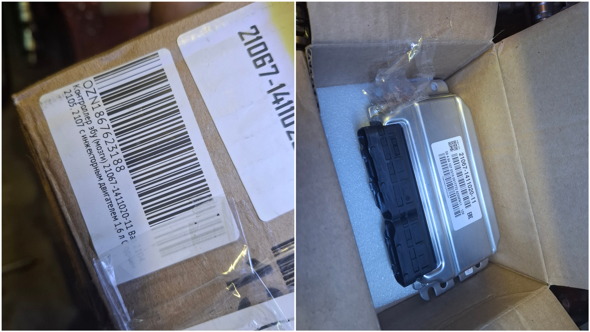Разница в три раза. Трудно не повестись. Клиент обещал привезти ЭБУ через день, но в итоге привёз его только через четыре дня. И вот оно у нас в руках. Коробка — обычный картон, внутри полипропилен и пупырчатая плёнка, чего не должно быть в оригинале.