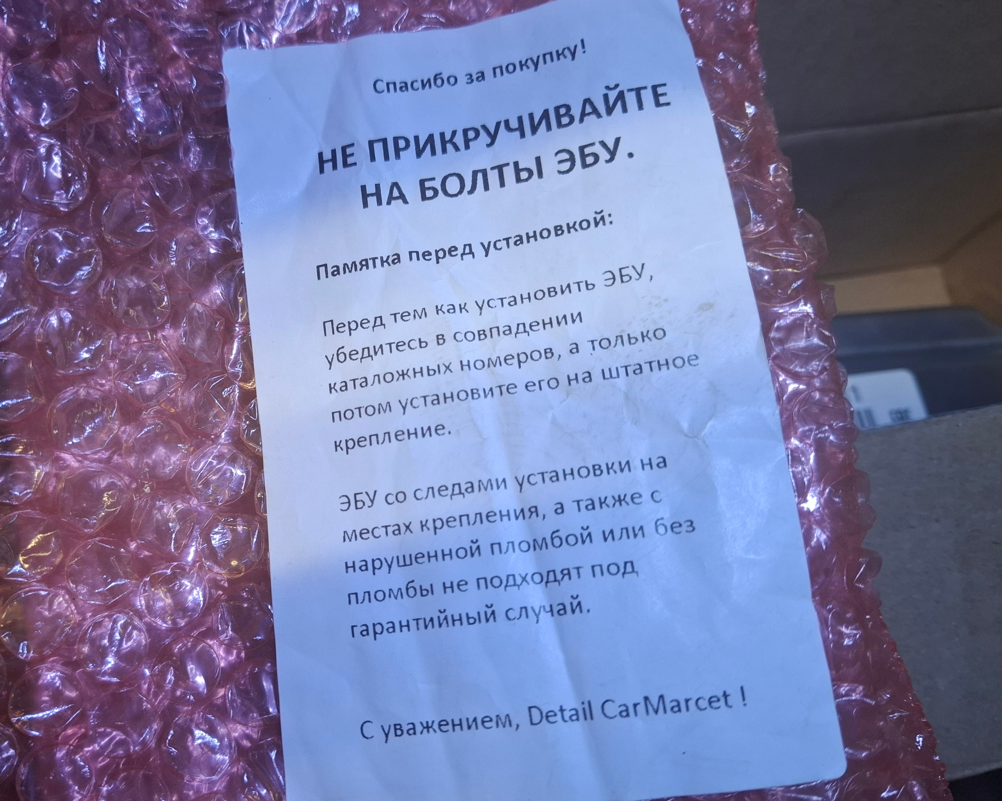 Памятка о гарантии, которой я никогда раньше в жизни не видел в упаковках с оригинальными ЭБУ, тоже не внушает доверия.