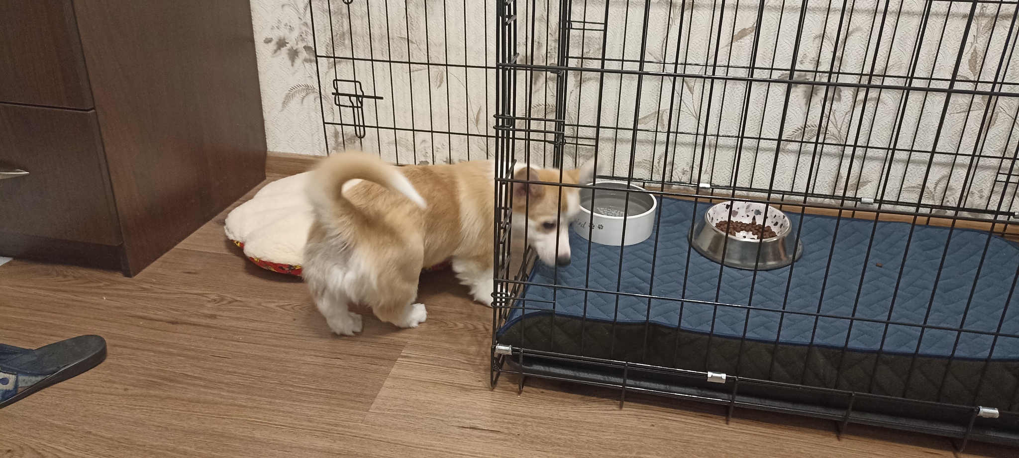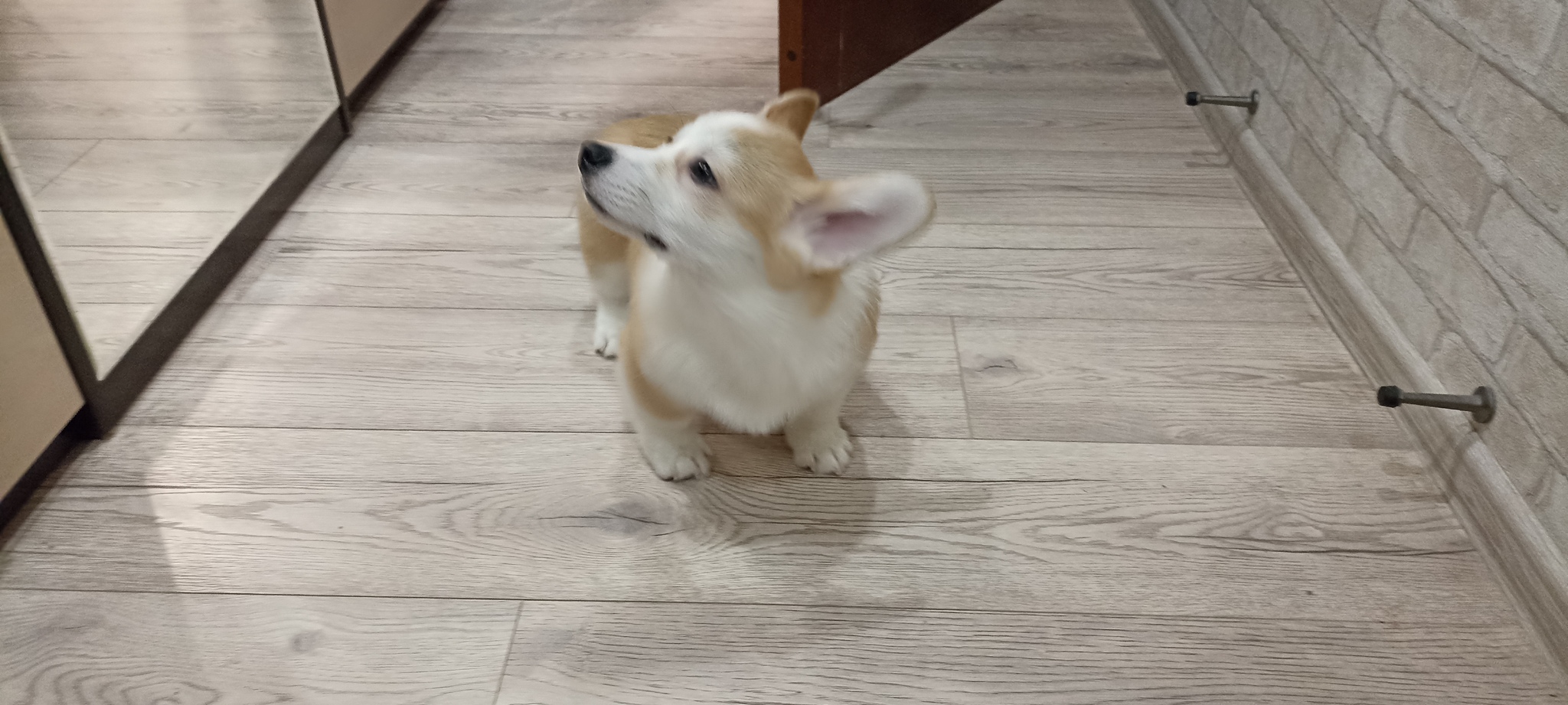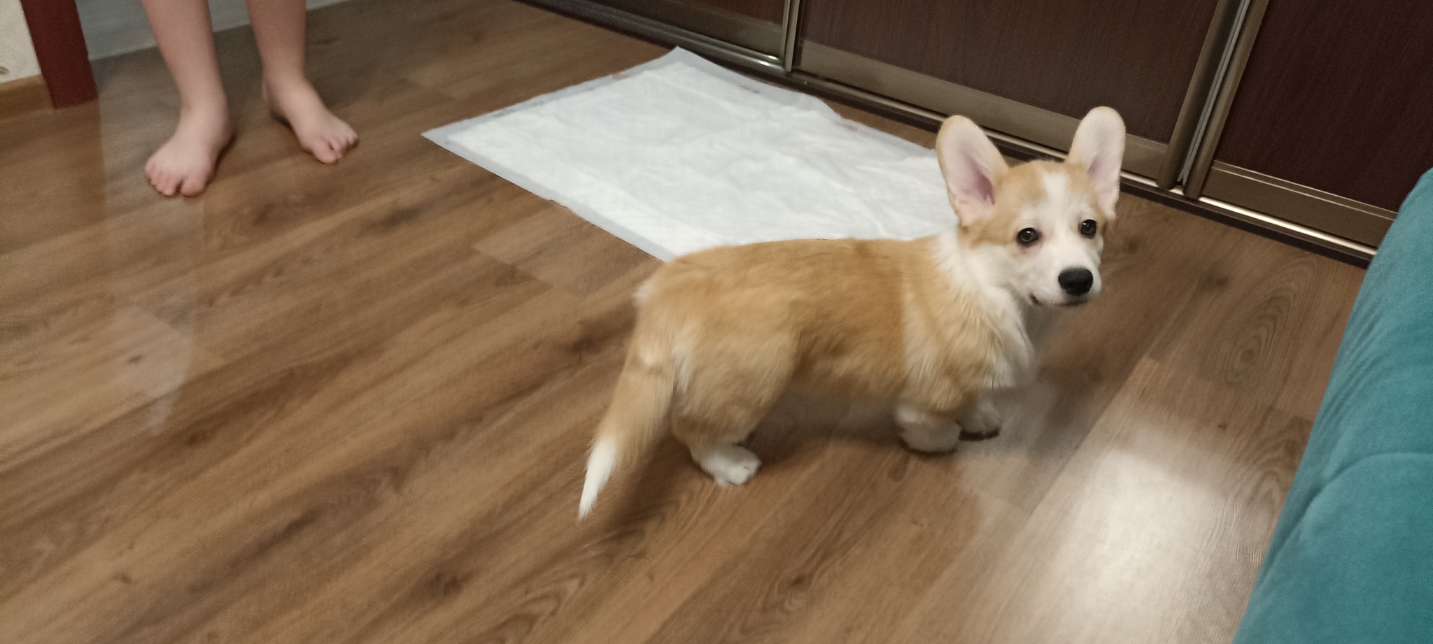 Спасибо всем за советы. Теперь у нас дома прекрасный бутуз. Не знаю как вышло, но при выборе собаки я сказал "Корги - отлично! Значит будет Батон". В итоге так и вышло - дочке кличка запала. Сегодня первые часы дома. Переживает расставание с сестрами и мамой, но заигран и заласкан.