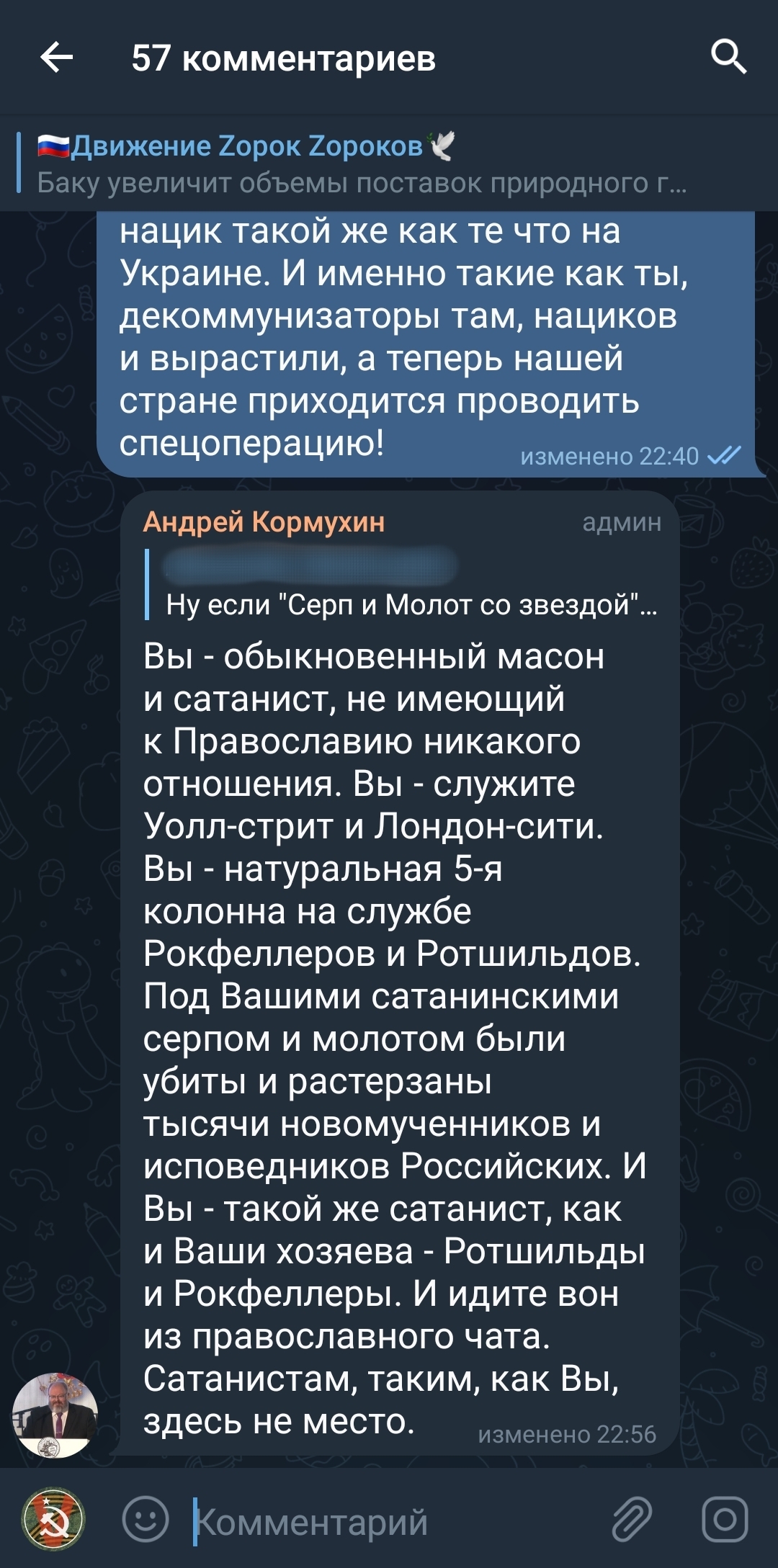 Ну что же, к сожалению переписка с Носовым у меня не сохранилась - архивный винчестер пал смертью храбрых и его пока не восстановить, но вот осталось то, что в архив я не успел перенести с большого компьютера - переписка из моего заявления в СК с самим основателем "сорока мудаков сороков" Кормухиным (ее он потёр после того как меня забанил в своей группе в телеграм).