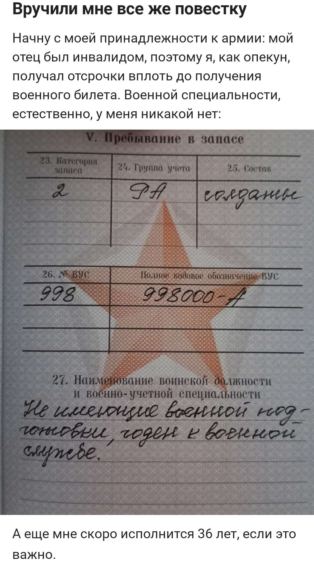 Продолжение поста «Вручили мне все же повестку»1