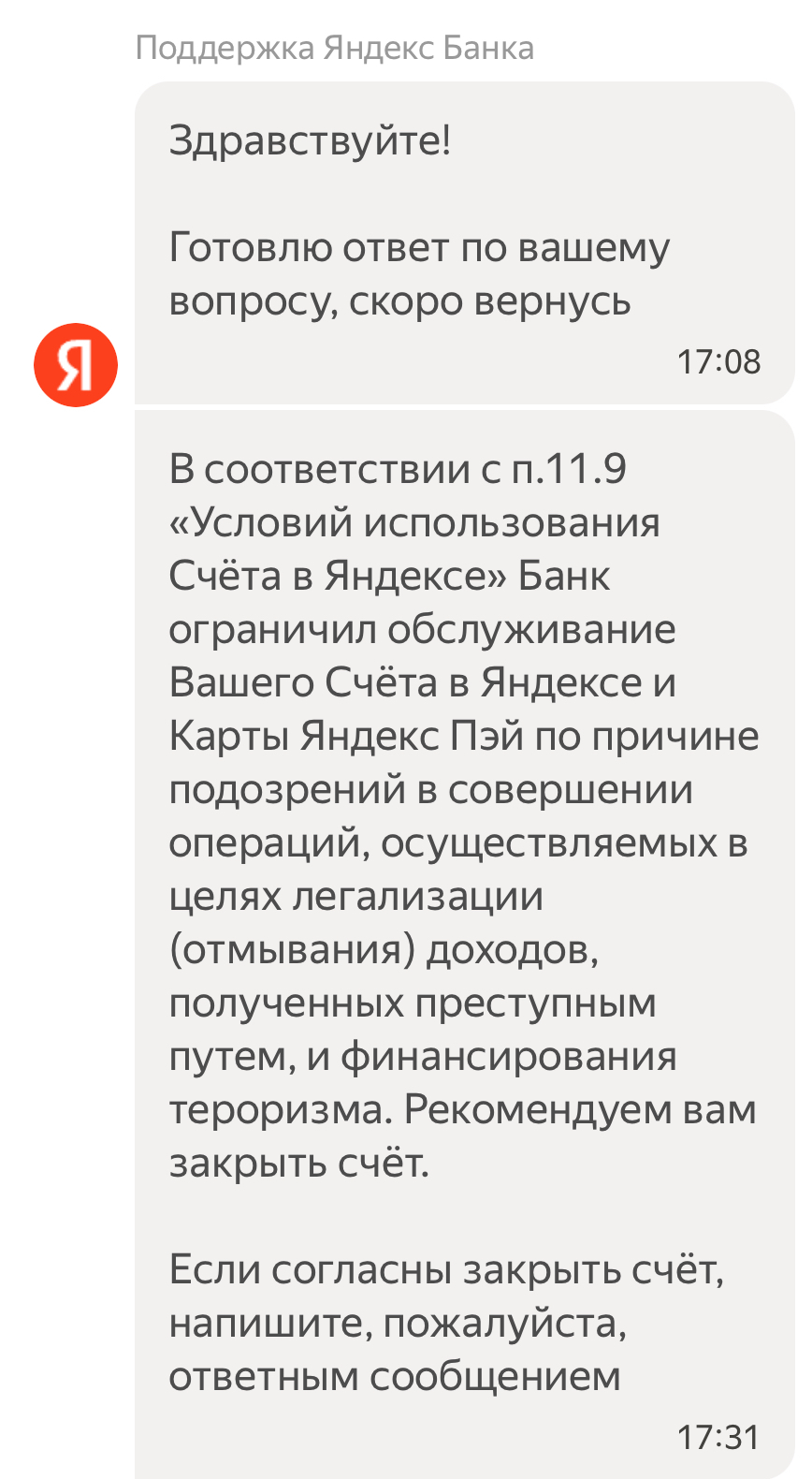 Не проходит и недели от предыдущего поста по Яндекс, как мне прилетает блокировка Пэй.
