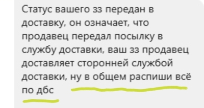" После второй уже просрочки я пошел разбираться в аналлах страницы заказа и нашел название магазина. В поиске нашел этот самый магазин, их ВатсАпп, написал им вопрос. И О ЧУДО! они, оказывается, более клиентоориентированы, чем яндекс. Перезвонили, все уточнили, ответили. И дату доставки правильную назвали, и ко скольки примерно привезут. Но прикол в том, что они, блядь, ЭТО УЗНАЛИ У ЯНДЕКС ДОСТАВКИ, тк это они должны мне были всё привезти!"
