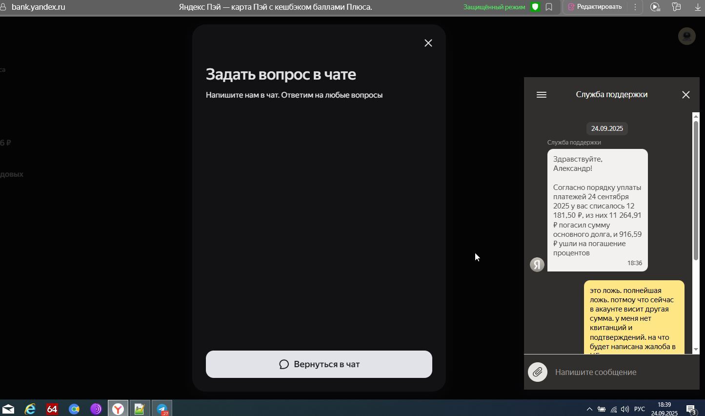 таки после опубликования поста со мной открылся таинственный чат в яндекс пей. и там таинственный некто выдал мне страшную тайну. смотрите скриншот. при этом я должен им поверить на слово. А что в сплите? в сплите все спокойно так и висит платеж 9567 или что то около того. при этом я вполне доверяю что правда все что написал специалист банка, какого банка какой чат что ты несешь? квитанция мать их где квитанция билли? но тогда уровень кретинизма безалаберности и отвратительной работы а также уровень программистов и учета ДЕНЕГ платежей просто днище. Это обсЁЁЁр господа. это просто максимальное дно. жалоба в ЦБ однозначно. С требованием оштрафовать.