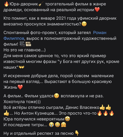 Предыдущий пост о фильме с еще одним интервью тут: Впечатления о фильме "Юра дворник" от автора оригинальной истории