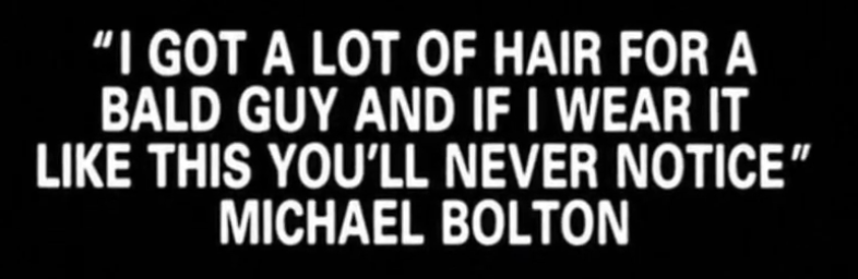 У МЕНЯ МНОГО ВОЛОС ДЛЯ ЛЫСОГО ПАРНЯ И ЕСЛИ Я БУДУ НОСИТЬ ИХ ВОТ ТАК, ТО ВЫ НИКОГДА НЕ ЗАМЕТИТЕ © МАЙКЛ БОЛТОН