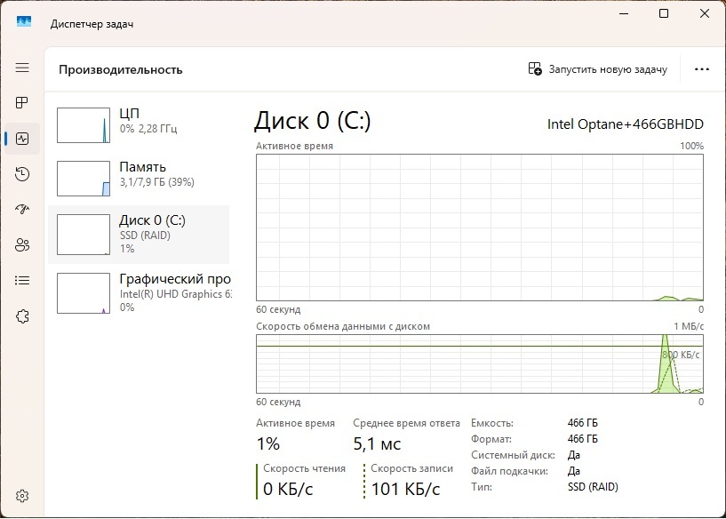 Накопитель Optane с включенным режимом кеширования. При типичной работе системы (офисной нагрузке), примерно всегда будет работать так, в моменты простоя скидывая лишнее на медленный HDD.