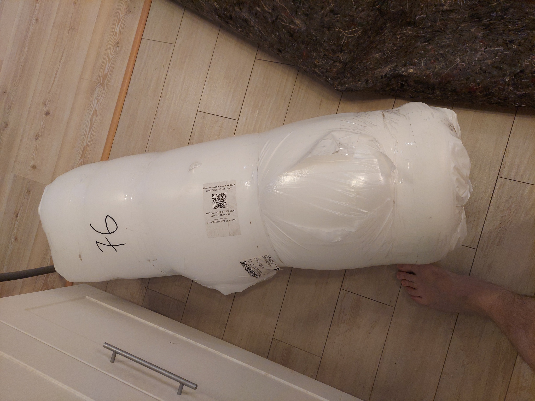 Поролон приходит свернут в рулон: