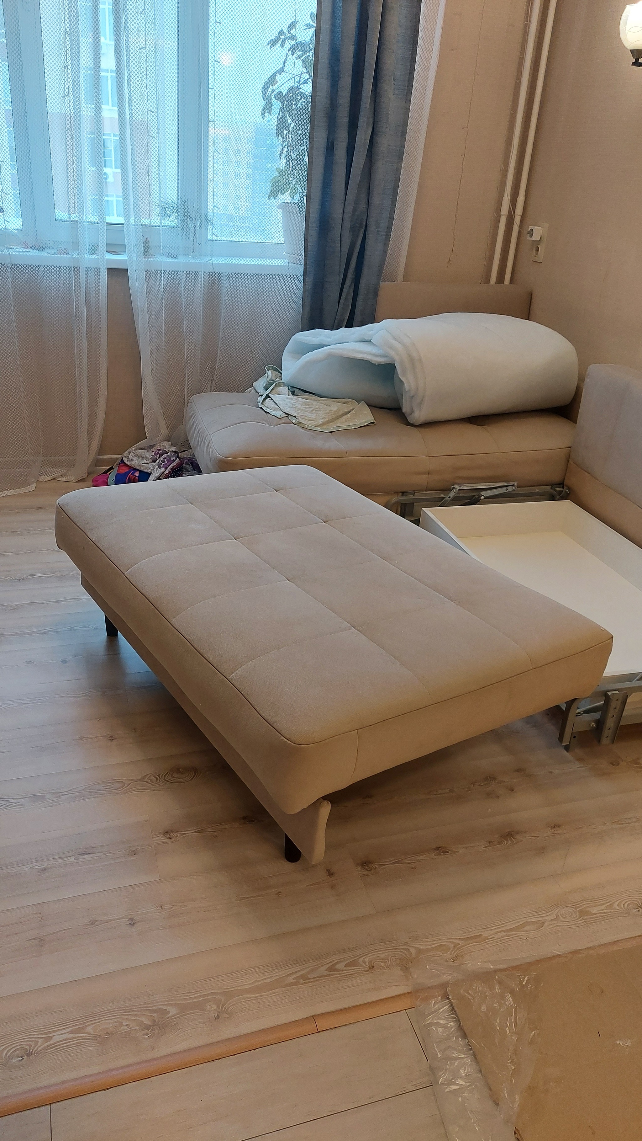 Итого с женой с утра и до вечера заменили все пружинные блоки на поролон и собрали диван. Дети утром оценили. Без жены, в одного не справился бы 100%, за что ей огромное спасибо!