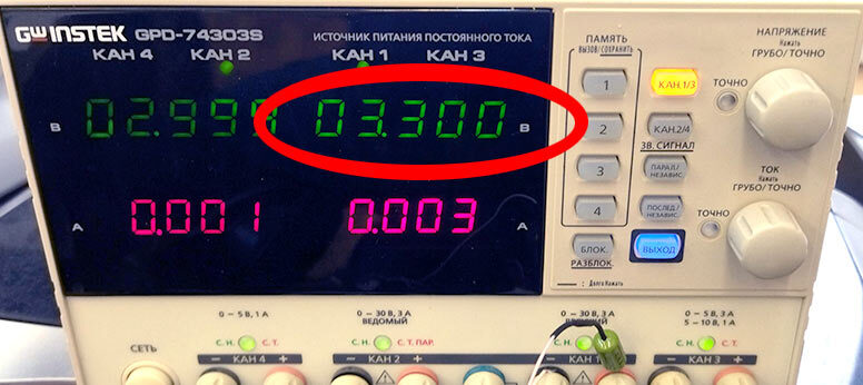 Подаём напряжение чуть выше, чем у новой батарейки (3.3 В), желательно через токоограничивающий резистор, скажем, 100 Ом.