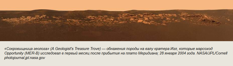 Вероятно, заявил Сквайрс, обнажения кратера Игл не просто находились долгое время в воде, а образовались как типичная осадочная порода на дне солёного озера или моря. Конечно, это утверждение предстоит подтвердить сбором дополнительных данных, но в любом случае можно считать доказанным: природные условия на Марсе когда-то были намного более благоприятными для жизни, чем сейчас.
