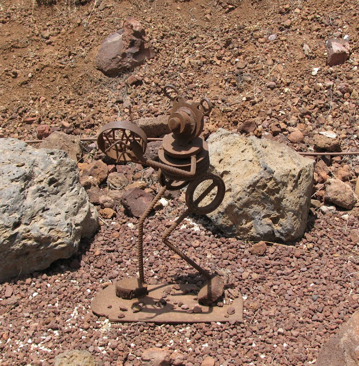 Из частей захваченной сирийской техники скульптор Юп де Йонг (Yoop de Yong) создал целую галерею забавных зверюшек, которые выставлены тут же вдоль дороги, ведущей наверх.