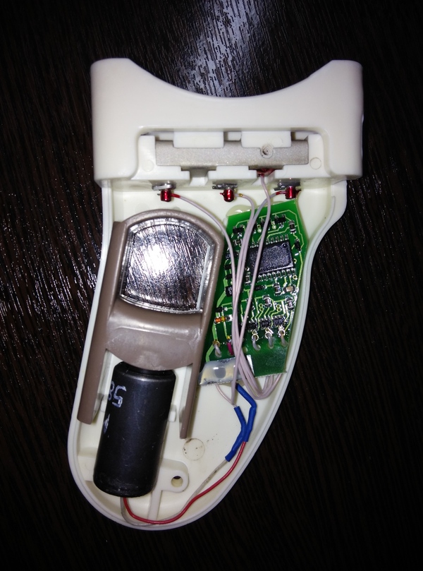 Внутри устройство хлипковато, так и просится герметиком закрепить генератор и два хлипеньких проводочка от него(пожалели крепежный клей?). Но пайка (с виду) довольно хорошая и плата закреплена.