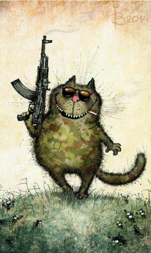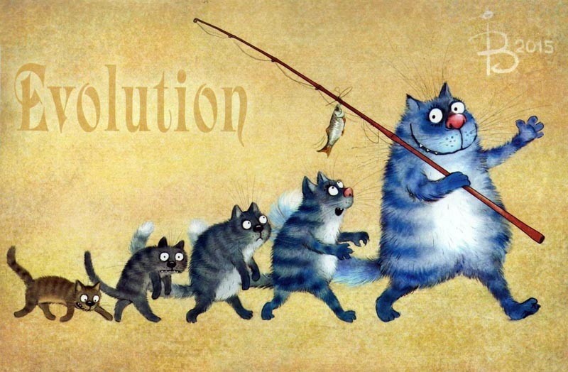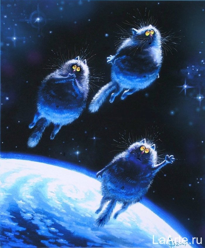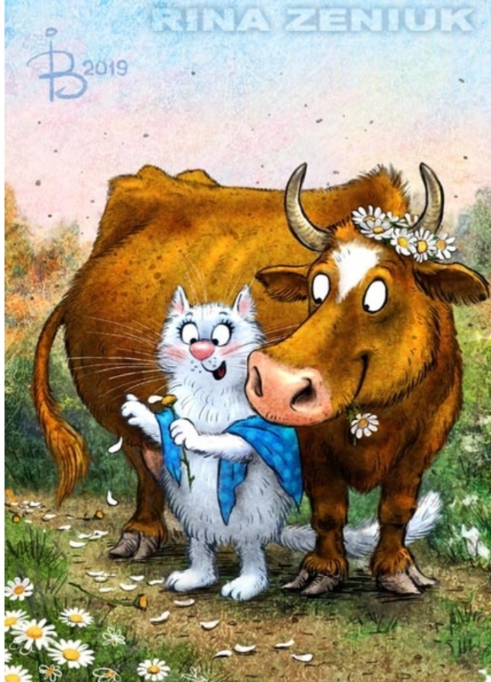 Выдумщицей этим неординарных, веселых, фантастических рисунков является художница из Белоруссии Ирина Зенюк, известная также под псевдонимов Рина З. Свои чудные полотна она в шутку называет абсолютно новым стилем живописи "котизм". Увидев однажды ее сюжеты, вы уже не спутаете их с работами других авторов.
