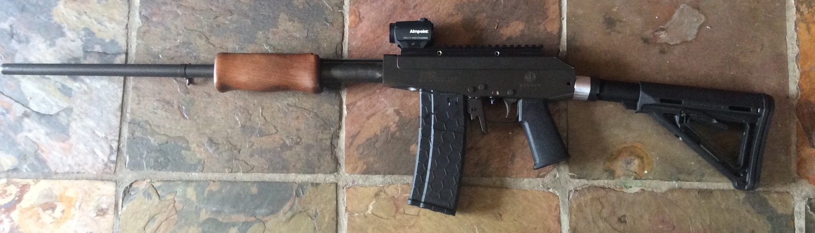 Со вторым все проще. Берем AR-15, добавляем 350 баксов и ставим подвижное цевье, связав его с затвором через отверстие от бывшей газоотводной трубки.
