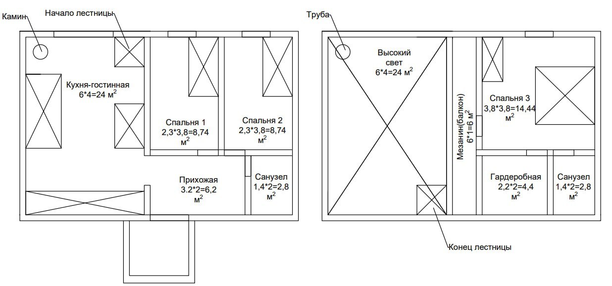 Много чего надо было делать на самом деле, но решил спланировать схему загородного дома. Габариты (6,4 на 9,4) ограничены размерами участка и уже существующих построек. Жить планируют родители на пенсии, но я тоже планирую регулярно приезжать. Баня и маленький гостевой домик уже построены. Прошу оценить и дать советы (но панамка уже готова).