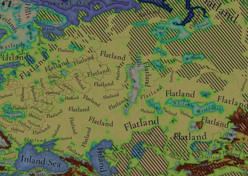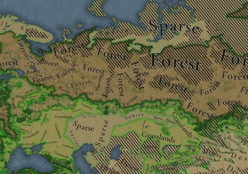 Рельеф здесь интересен, так как есть две основные экологические зоны. Первая — это степи, равнины с редкой растительностью и луга с холодным засушливым или континентальным климатом. А вторые сибирские арктические леса, которые, конечно, совсем другие. Кстати, Урал мы сделали как «холмы», так как это вполне заселенная территория, но, возможно, сделаем обзор с учетом ваших отзывов и добавим туда несколько гор.