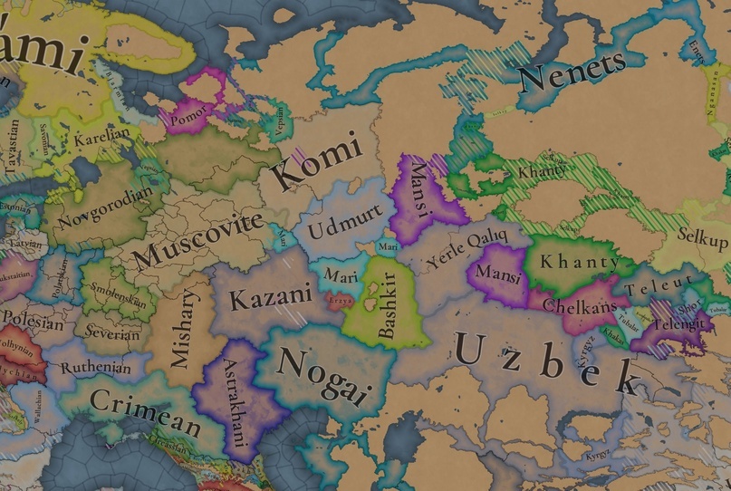 Славянские страны, находящиеся под ордынским игом, мы уже исправили, хотя нам еще предстоит исправить русские княжества, что будет сделано в соответствующем обзоре «Tinto Maps». Мы также осознаем, что нам необходимо немного улучшить окраску МО, чтобы обозначить не только Золотую Орду как повелителя этих стран, но и то, что Московия носит титул Великого Княжества Владимирского, что делает ее «ярлыком» ига. Эти исправления также планируется внести в течение нескольких недель.