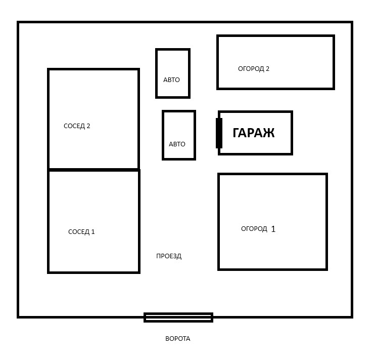 Уже долго не могу продать гараж из-за того что сосед (Сосед 2) паркует свои 2 машины перед гаражом и покупатель приходит, видит это, понимает что проезд постоянно перекрыт и уходит. Скандалить никому не захочется постоянно из-за этого проезда.