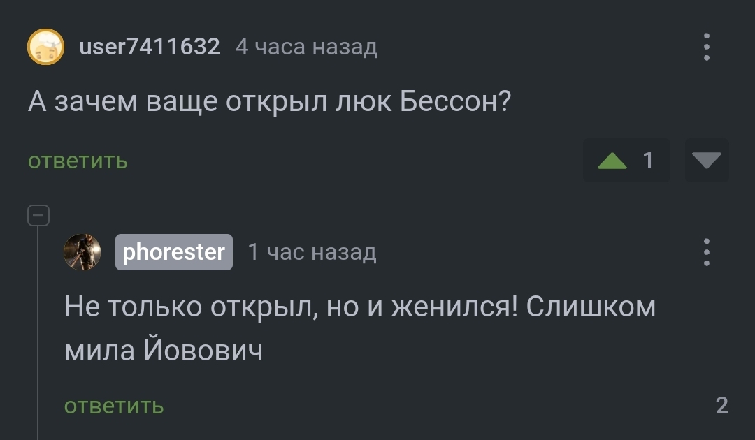17 phorester Лига отборного бреда Профилированный брус Уиллис 1 год назад #comment_307773087 Пятый элемент Брюс Уиллис Люк Бессон Милла Йовович Скриншот Комментарии на Пикабу Картинка с текстом 2 Ещё 0