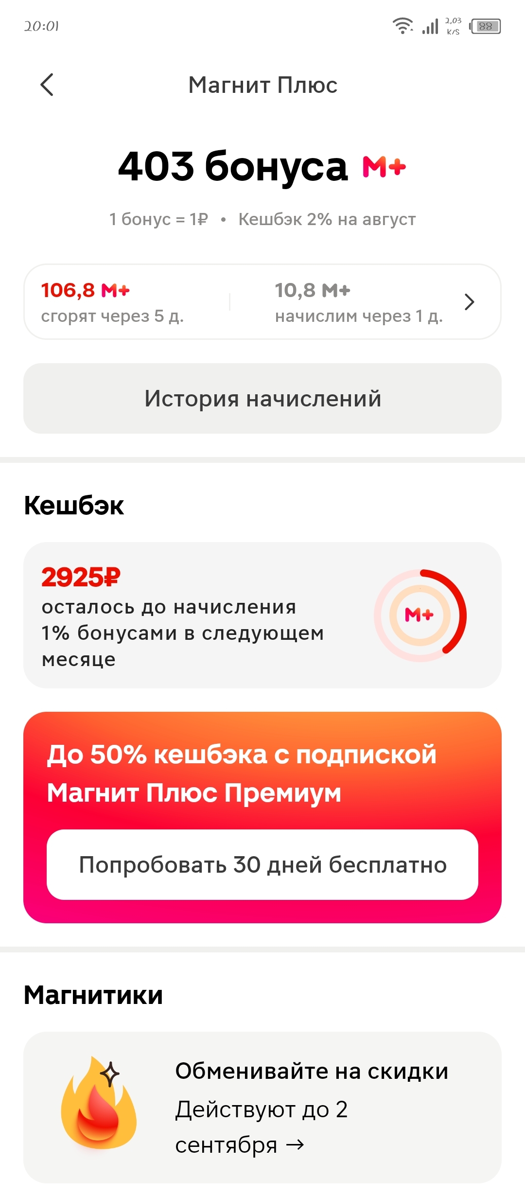 Совершаешь покупки, копишь бонусы, а в ответ от магнита блокируют карту, "подозрительная активность". В приложении достучаться до службы поддержки невозможно, по телефону к которому привязана карта, не дозвониться, " к сожалению все операторы заняты", удалось дозвониться только с другого номера. И то, разблокировать карту не получится, только завести новую и на другой номер телефона. Да и копить бонусы смысла нет, т.к. даже выбрав любимые категории ничего не накопить, все ценники в магазинах стоят "выгодно", " лучшая цена ", скидка***". Пошли вы на йух магазин Магнит!