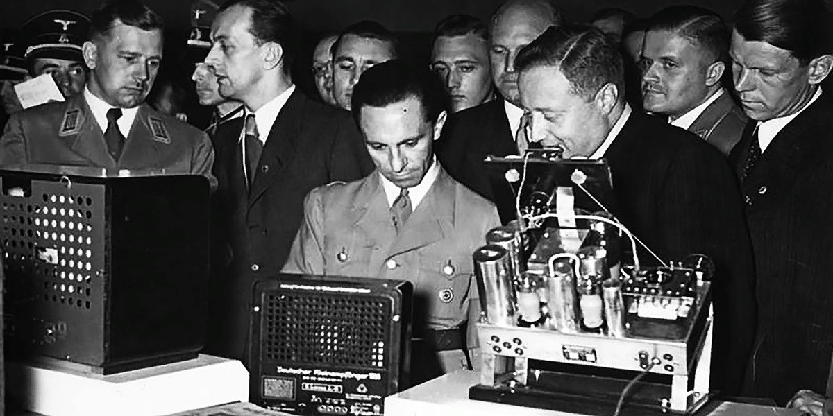 Spiegel TV в 1999 г. выпустила программу про телевидение в нацистской Германии - "Телевидение под знаком свастики". репертуар нацистского ТВ на удивление привычен. Основное содержание телепередач составляла даже не пропаганда и речи вождей, но развлекательный канкан полуголых девиц, выступления каких-то комиков, народное песенное творчество и гимнастика. Правда, в “прямом эфире” фюрер с народом не общался - все-таки аудитория была ограниченной: несколько тысяч владельцев “народных телеприемников”, ну и в почтовых отделениях были оборудованы “телевизионные комнаты” - всего штук двадцать. Однако же в 1939 году нацисты планировали наладить массовое производство “народных телеприемников”, только война помешала.