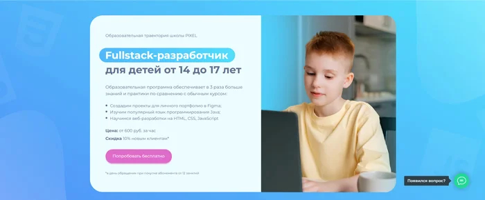 Акции: на онлайн-обучение программированию для школьников в Pixel действует скидка в размере 10 %, она предназначена для новичков. Дополнительно можно оплатить учебу маткапиталом и в рассрочку 50/50. Есть возможность оформления налогового вычета.