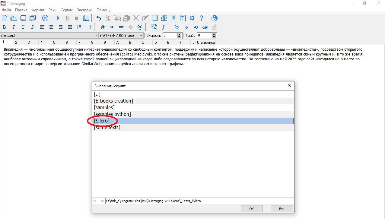 Через неё можно озвучивать используя установленные голосовые модели, но нас больше всего интересует Silero.