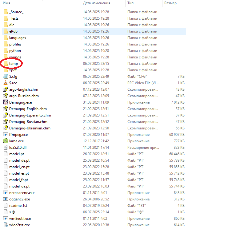 Теперь идём в папку "temp", куда по умолчанию программа сохраняет все результаты:
