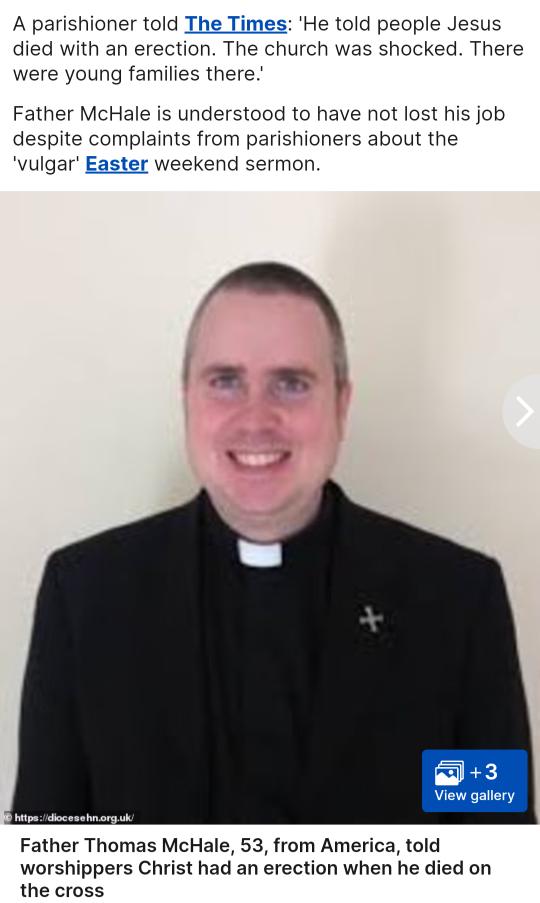 Известно, что отец МакХейл не потерял свою работу, несмотря на жалобы прихожан на "вульгарную" проповедь в пасхальные выходные.