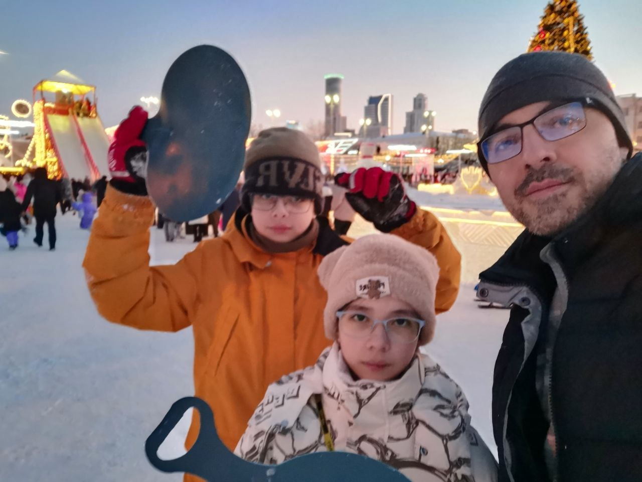 А ещё с горки можно посмотреть на ёлку, но недолго, так как уже нужно съезжать.