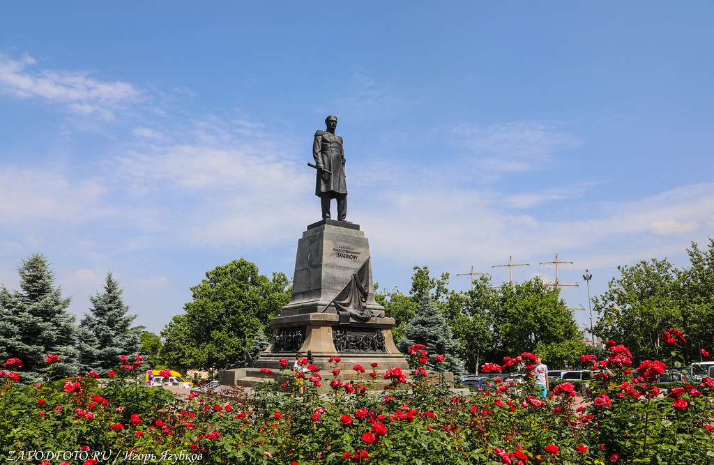 Памятник адмиралу Нахимову украшает главную площадь Севастополя. Именно на этом месте в V веке до н. э. появились первые постройки античного Херсонеса. Статуя прославленного адмирала, выполненная художником А. А. Бильдерлингом и скульптором И. Н. Шредером, установлена в 1898 году. Дата открытия была приурочена к 45-летию Синопского сражения. До наших дней оригинальный памятник не сохранился. Его разрушили в 1928 году, а на освободившийся постамент установили скульптуру Ленина. На своё место памятник адмиралу Нахимову вернулся в 1957 году по приказу высшего партийного руководства. Но это был уже другой монумент, очень похожий на предыдущий.