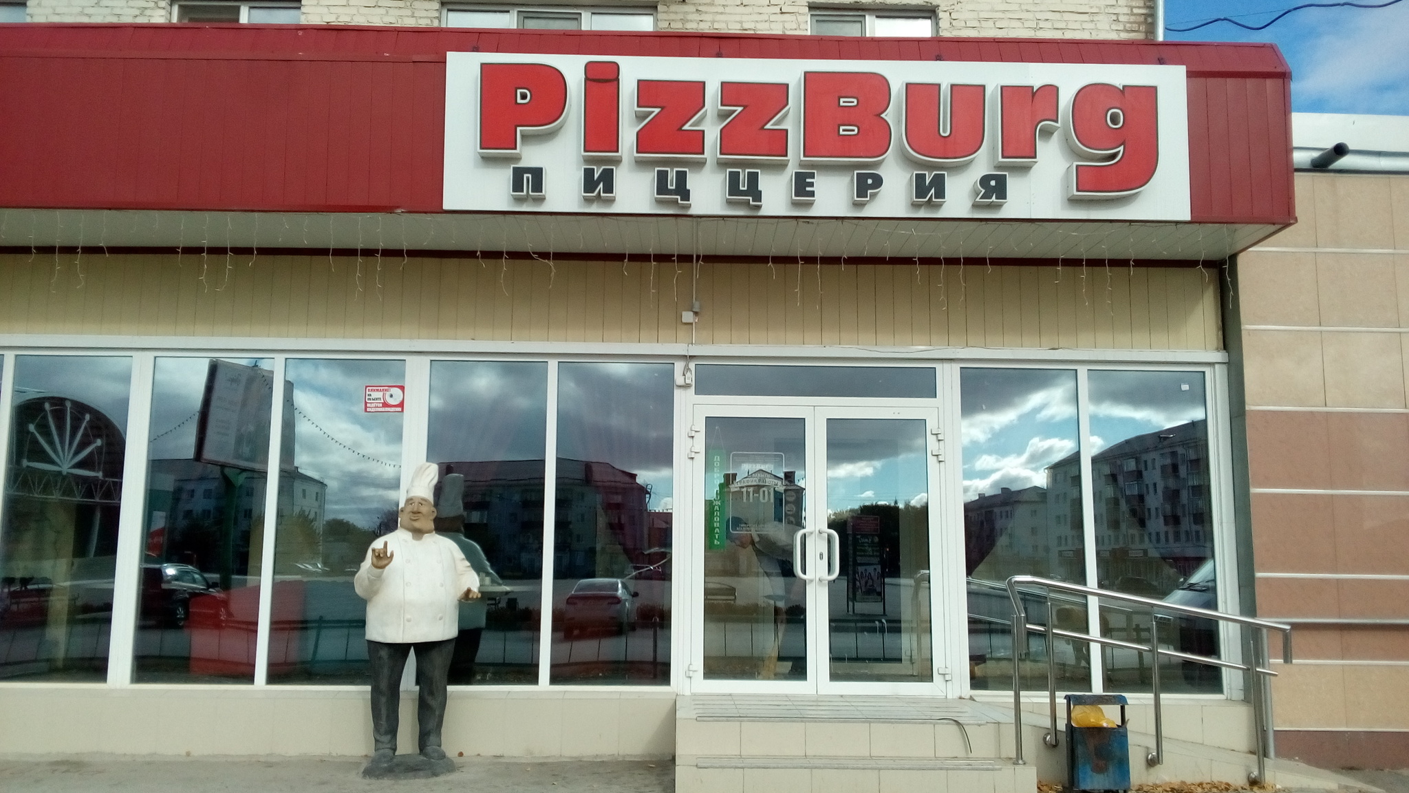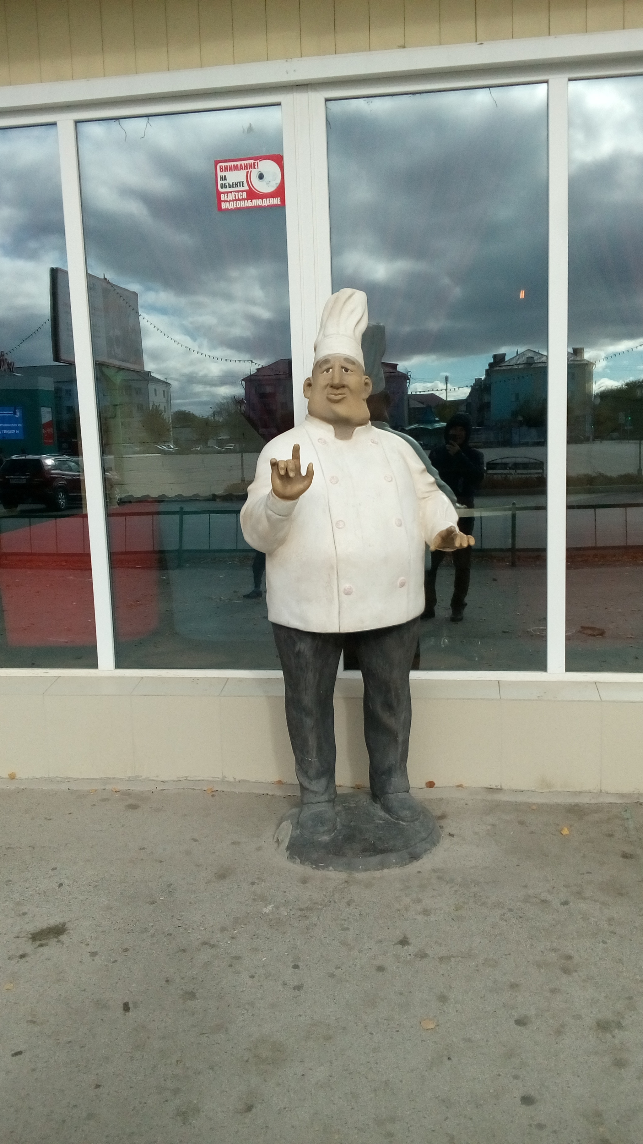 Фигурка повара приглашает отобедать. Пиццерия на улице Горняков г. Сибай.