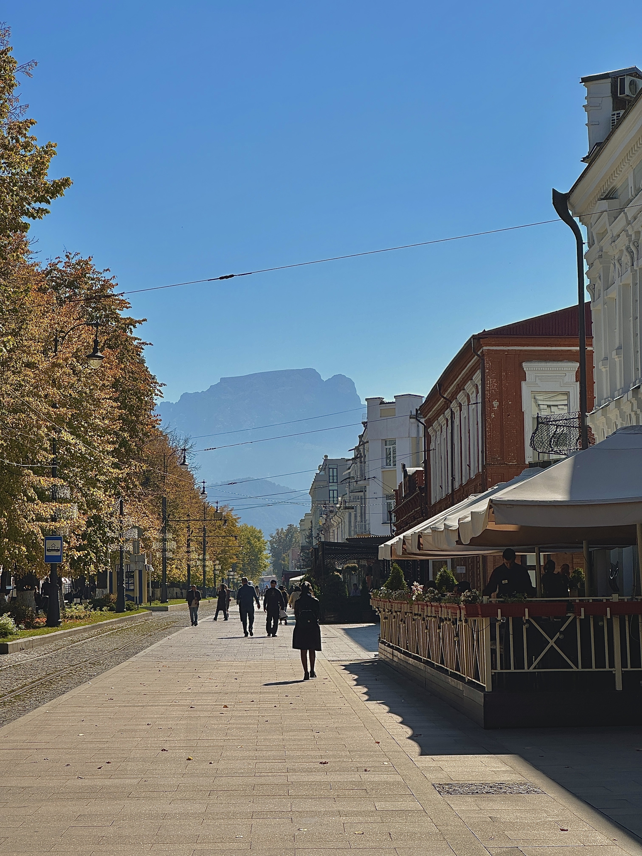 Еще один дом с историей — Академический русский театр имени Е. Б. Вахтангова. Это старейшая сцена Северного Кавказа, создана в 1871 году. Здесь начинал писательскую карьеру бывший военврач Михаил Булгаков. Он жил во Владикавказе с 1919 по 1921 год и за это время успел поставить в театре четыре пьесы. Дом писателя расположен на улице, которая сегодня носит имя Маяковского.