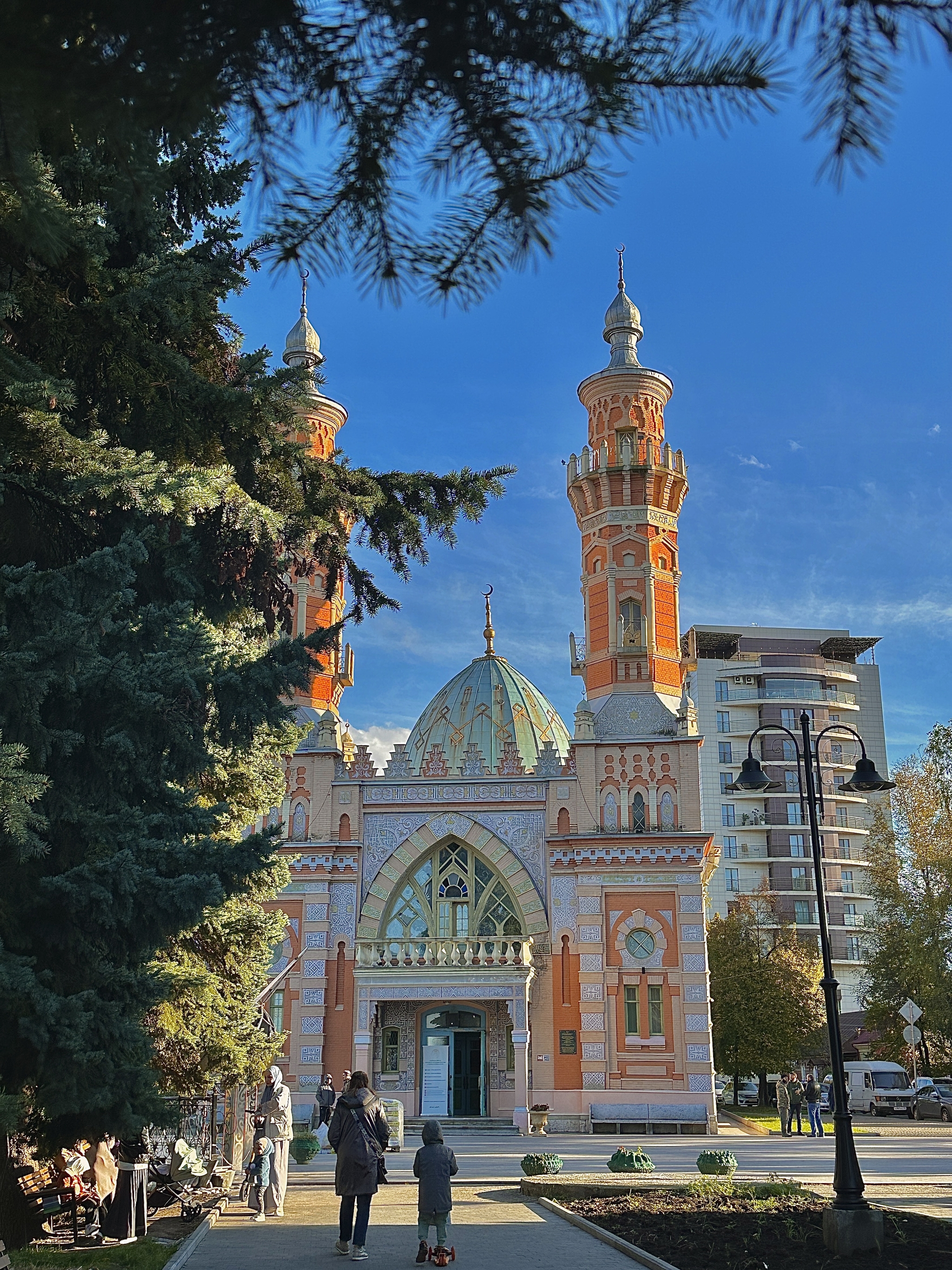 Суннитская мечеть на левом берегу Терека у подножия Столовой горы. Одним из меценатов, финансировавших строительство мусульманского храма, был бакинский промышленник М. Мухтаров.