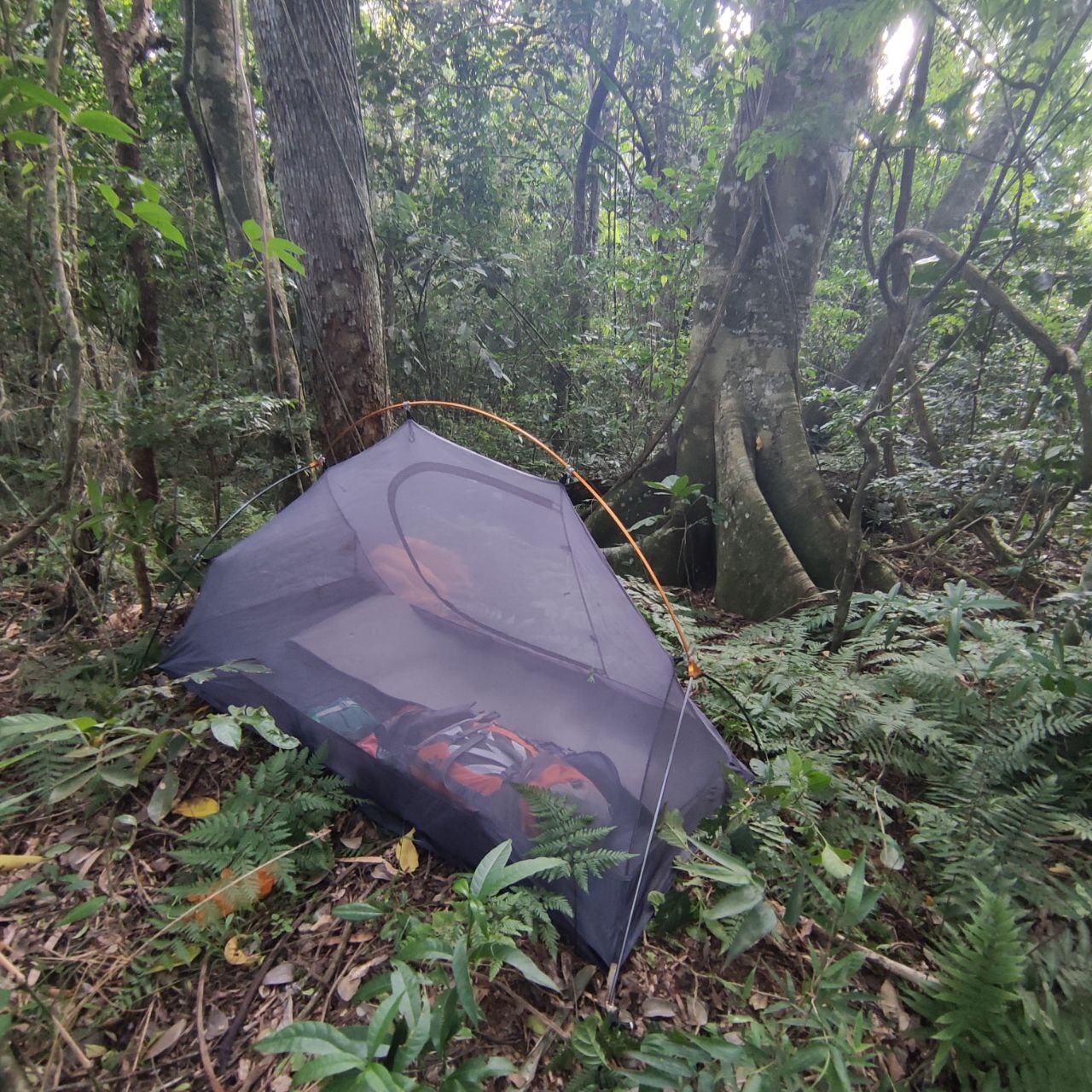 За день очень устал. Даже обилие воды и бандана не помогли, целый день на солнце - это очень тяжело. Разболелась голова. Сытный ужин не помог, значит дело не в голоде, а в солнце. Палатку поставил без тента, поскольку иначе дышать не получилось бы совсем - ни намека на дождь, солнце зашло, а на улице все ещё жара. Так и лег, слушая птиц и стрекочущих насекомых.