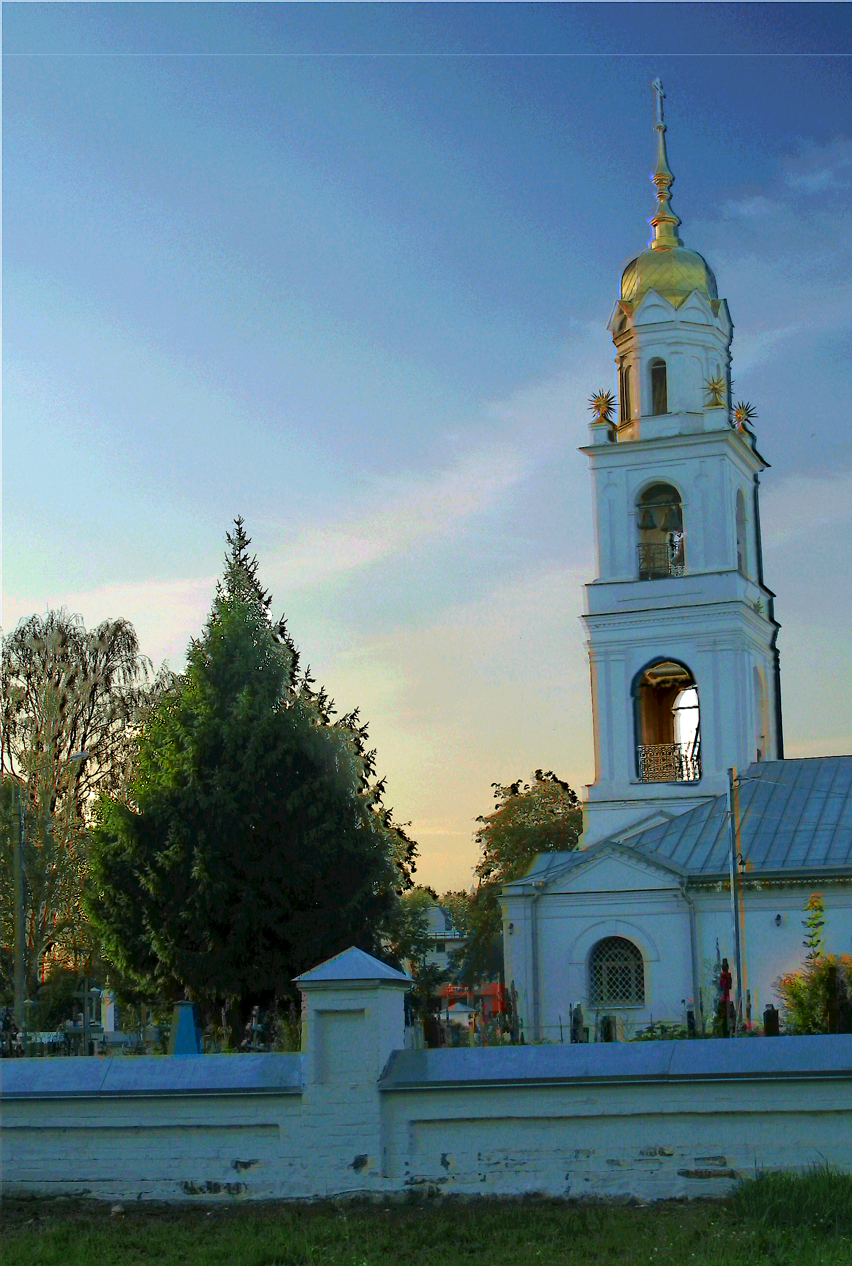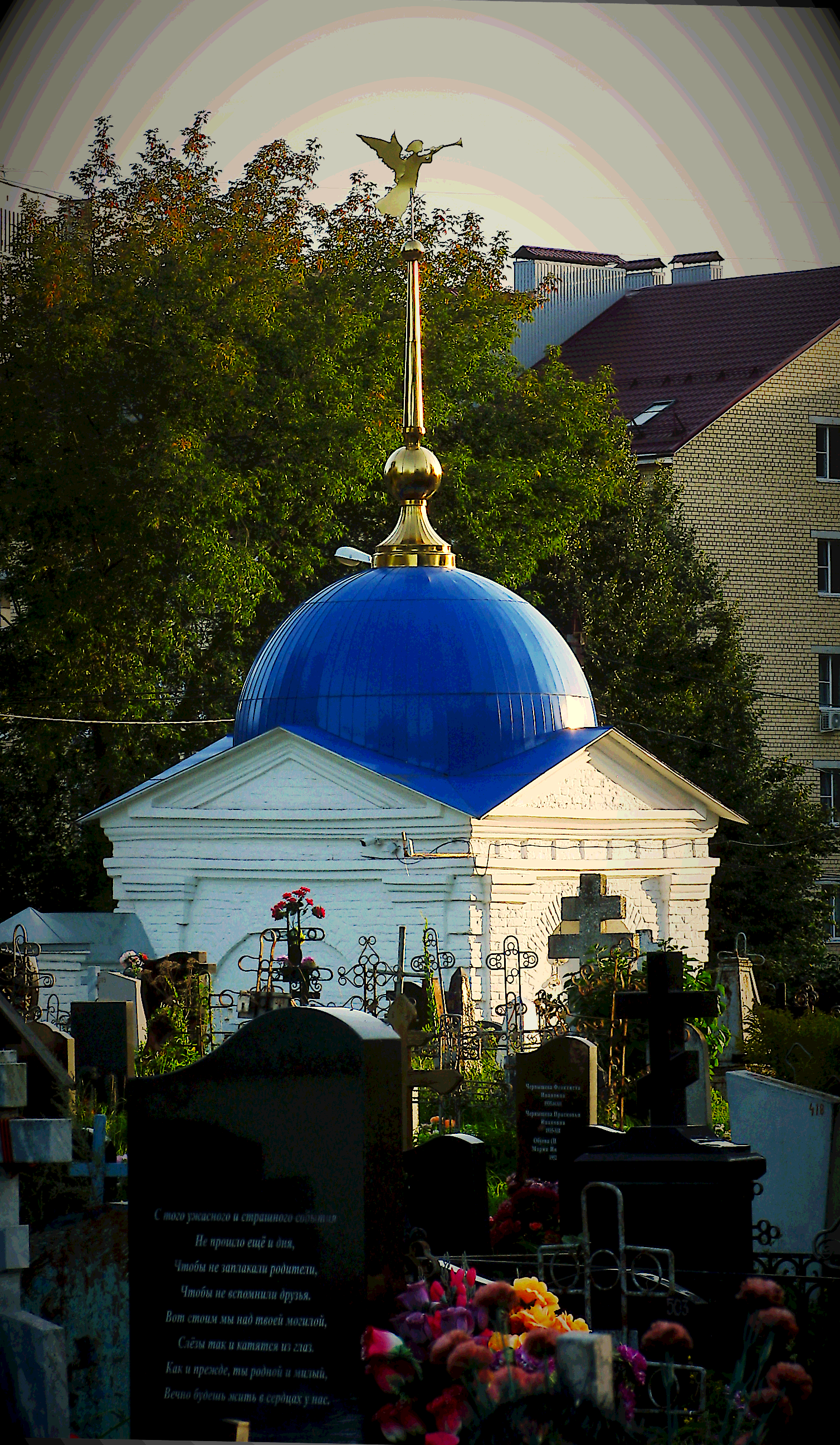 Звонница -- попытка собрать HDR из трёх кадров. Часовню можно было и двумя кадрами, чтоб в фокусе были и памятники, и, собственно, объект архитектуры.