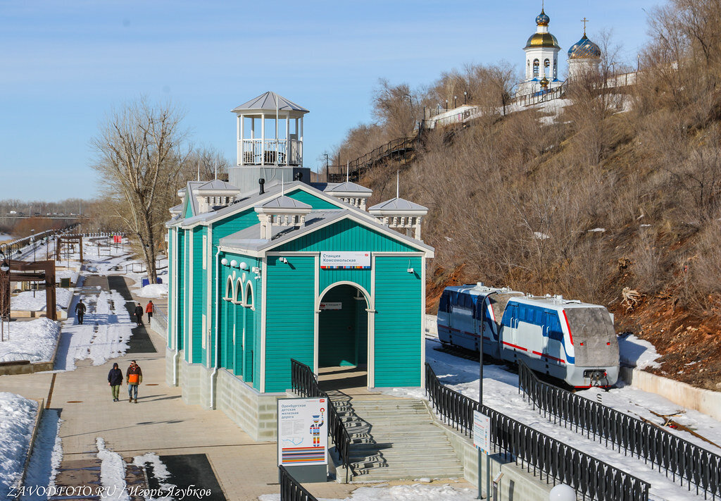 На набережной реки Урал, под пешеходным мостом расположена железнодорожная станция «Комсомольская». Это конечная станция оренбургской детской железной дороги. Детская железная дорога им П.А. Кобозева отсчитывает свою историю с 1953 года, когда всего за два месяца силами оренбургских комсомольцев было проложено пять километров железнодорожных путей и построено четыре посадочные платформы.