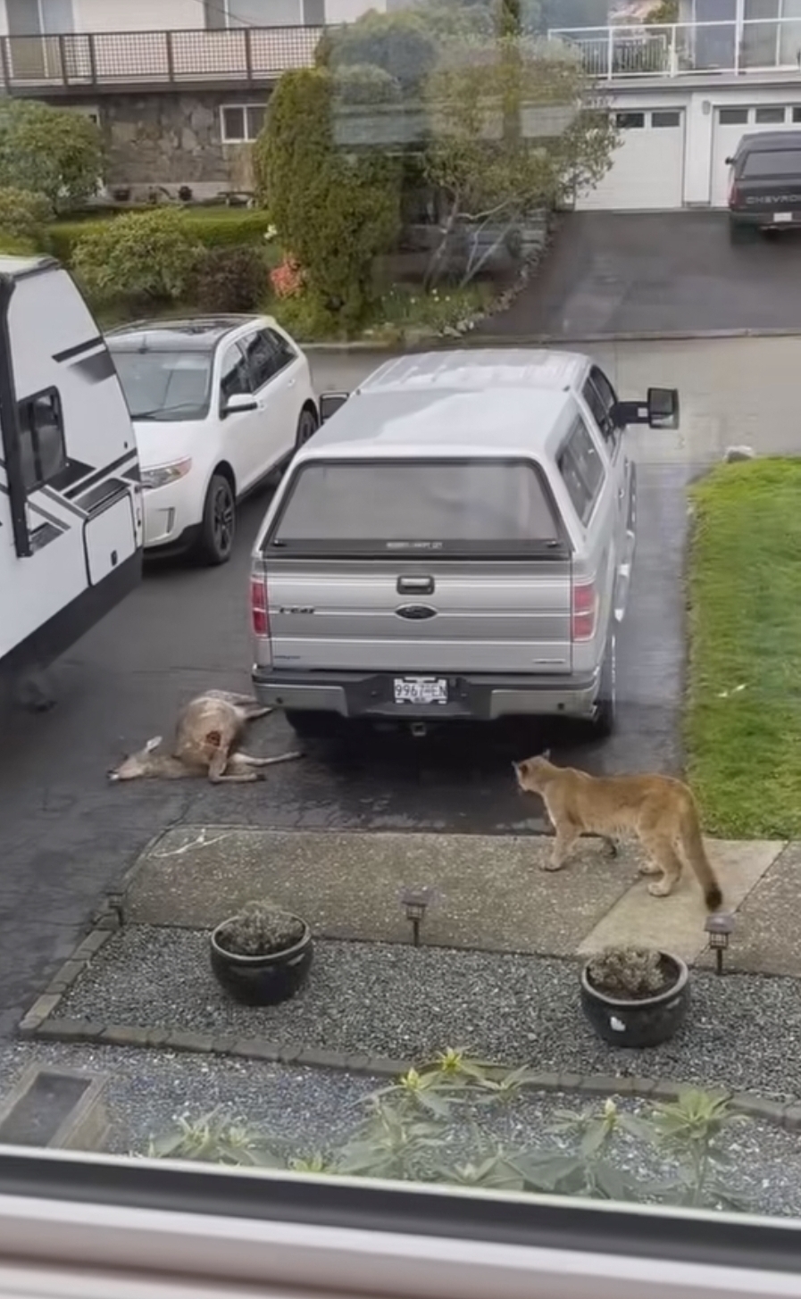 В одном канадском городе Колвуд на этих выходных случилось кое-что необычное. То что пумы заходят в город - это нормально, это случается. Олени ходят по городу - тоже обычное дело. Но чтобы пума охотилась на оленя прямо в городе - это что-то и ряда вон.