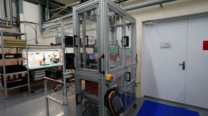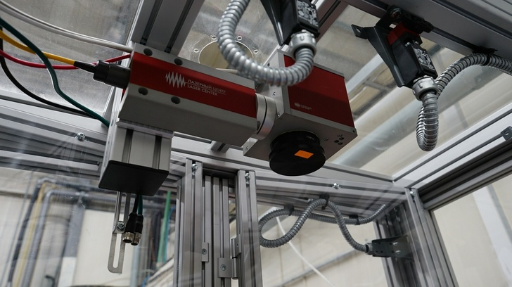 В данном случае установка занимается маркировкой, поэтому в ней установлен лазер, но для других задач можно установить и другое оборудование. Лазер, кстати, российского производства.