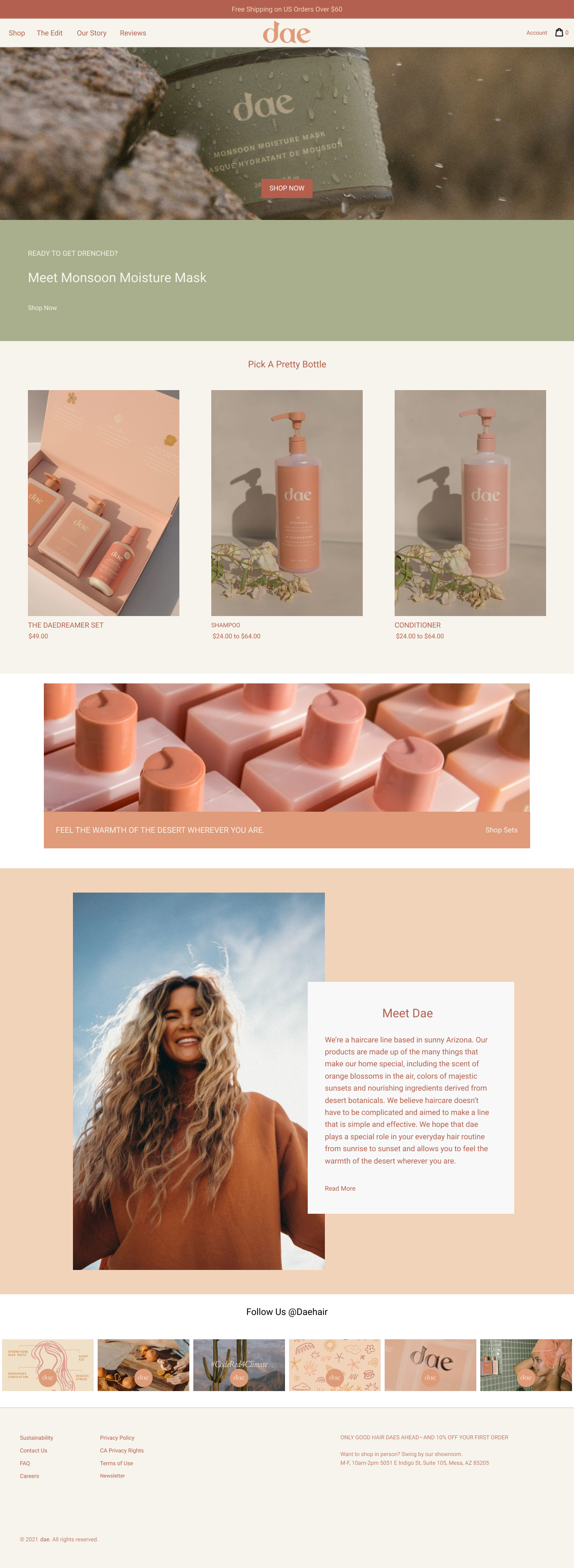 Тематика сайта - магазин товаров косметики для волос Dae.