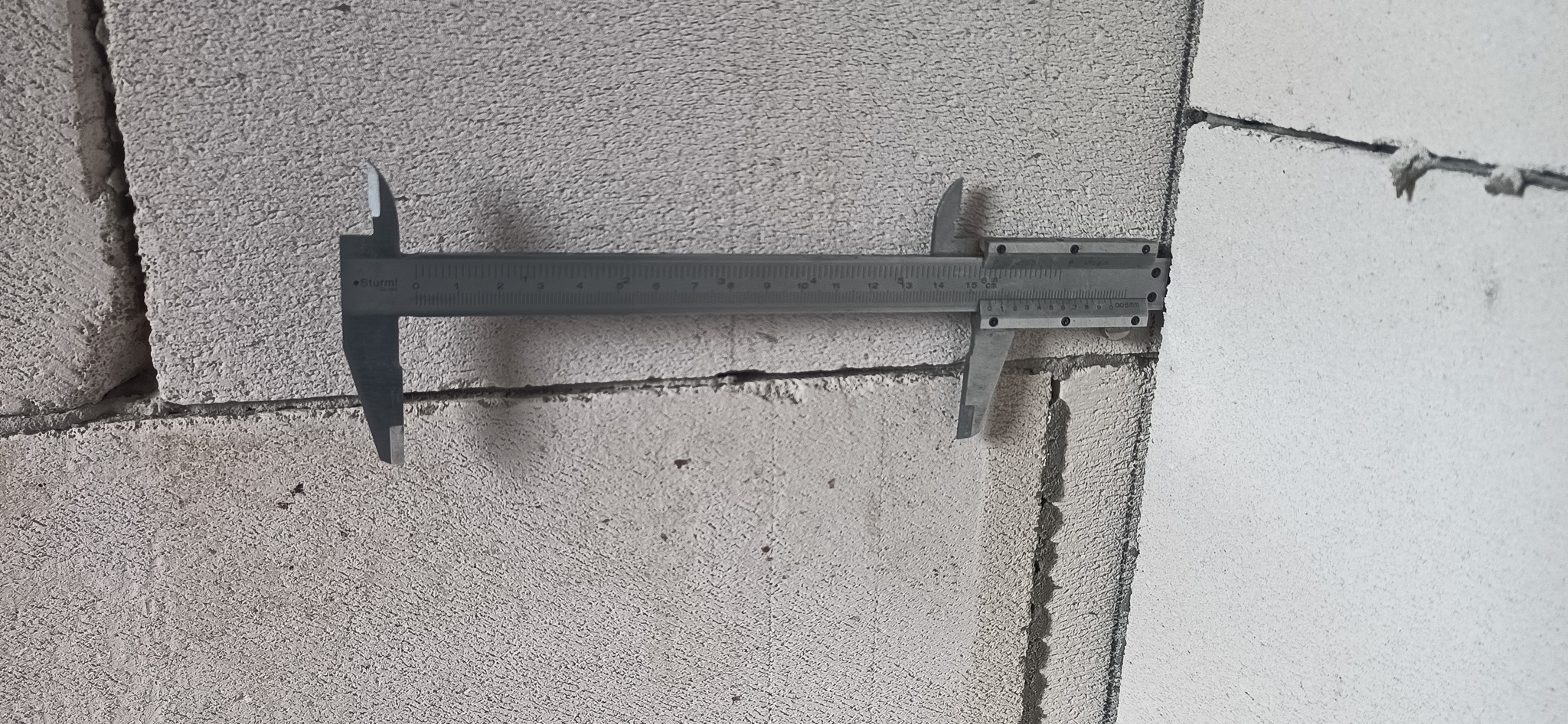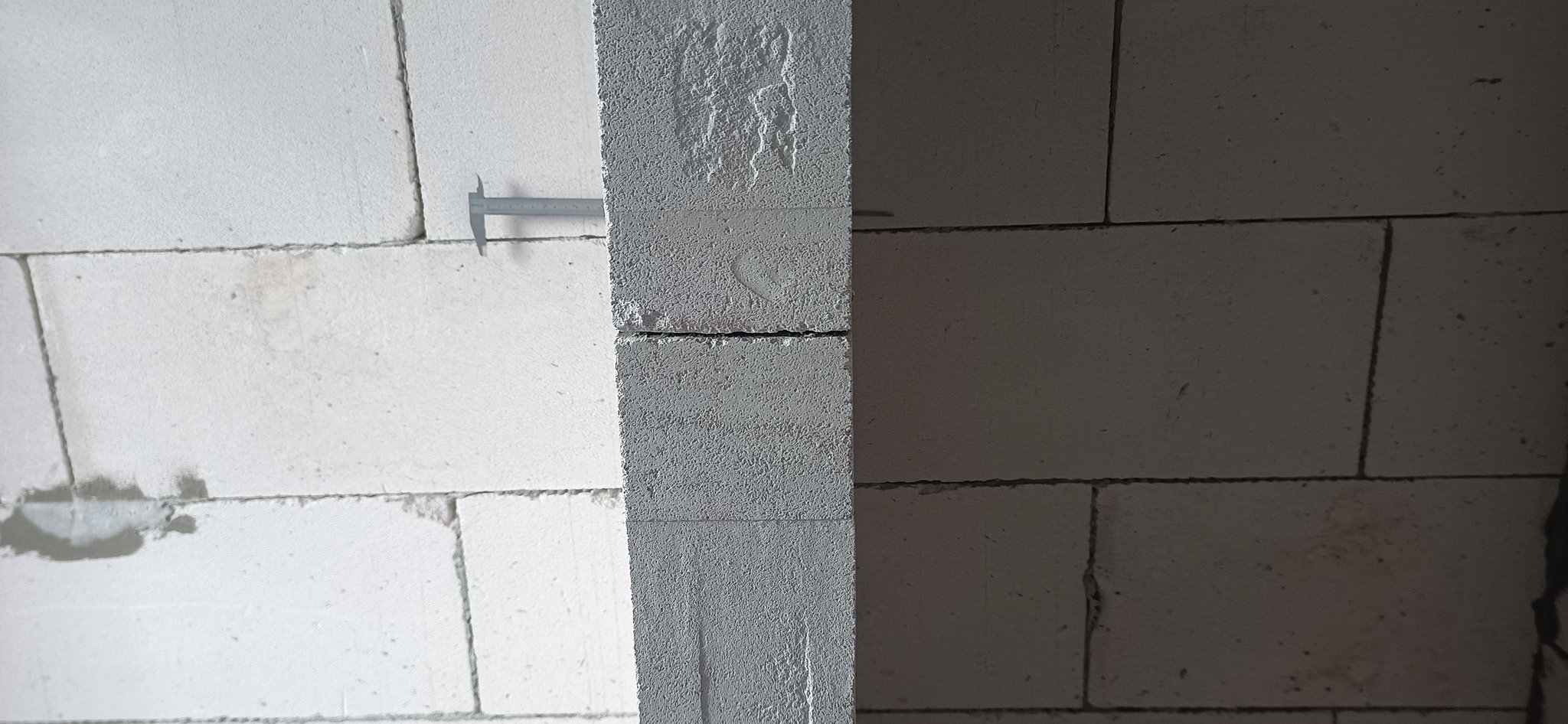 В данном случае, штангенциркуль 150 мм смог практически на любом квадратном метре стены найти место для погружения своего глубиномера на всю длину. Примыкания внутренних перегородок к внешним (тут, наверно, надо добавлять "так называемым") стенам также выполнено с надеждой на прощение.
