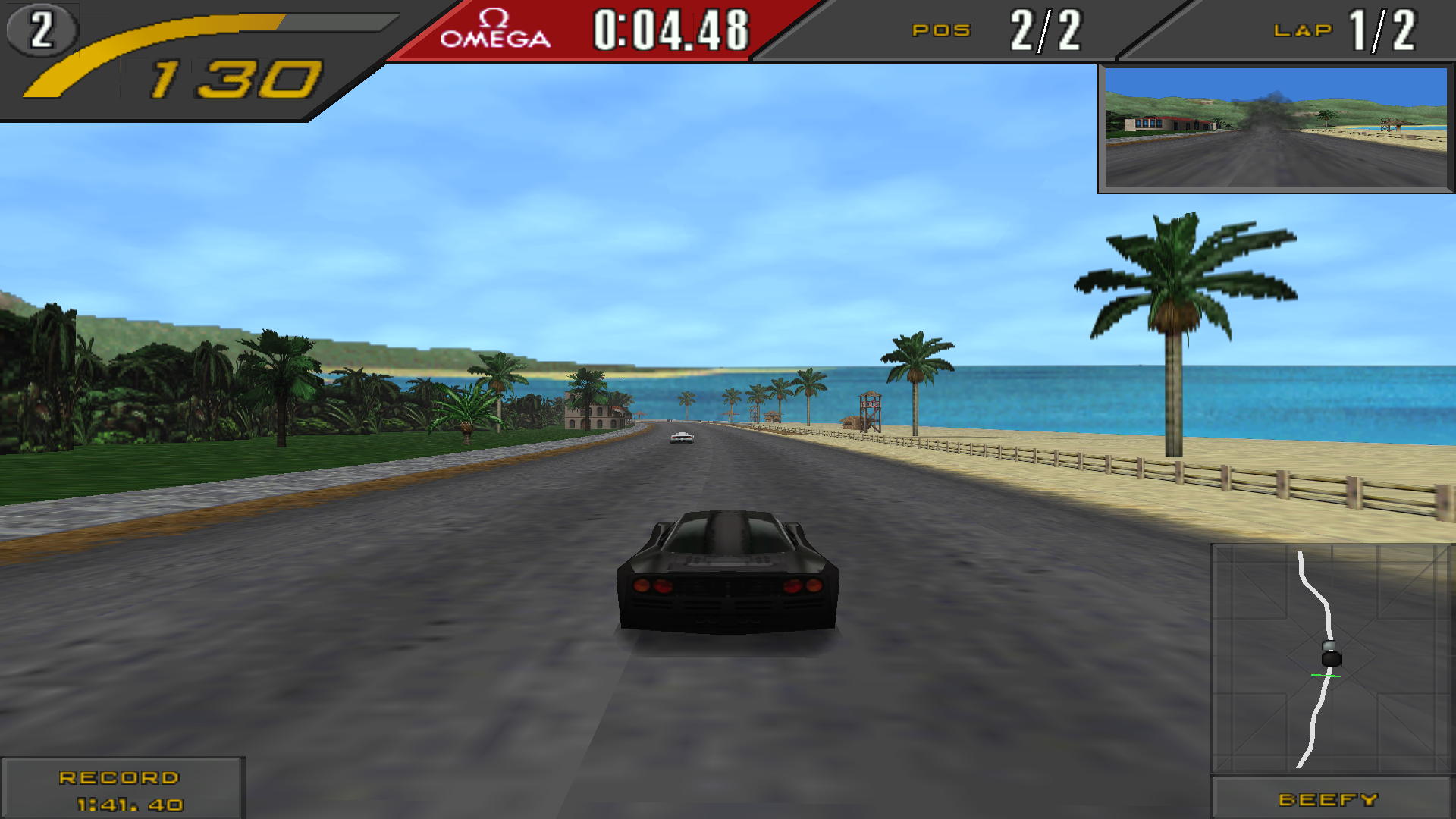Непосредственно в геймплее к машинам тоже есть вопросы. Сразу бросается в глаза низкая детализация автомобилей, угловатые колеса, но все же качество получше, чем в предыдущей части - тут я без особых претензий - не забываем что это 1997-1998 год и все ресурсы 3D-ускорителя уходят на отрисовку детализированного окружения. Причем настолько, что в версии Special Edition убрали вид от руля, который, между прочим был в обычной Need For Speed 2. Честно говоря, в этой игре, вид из кабины, учитывая физику управления, не особо то и нужен.