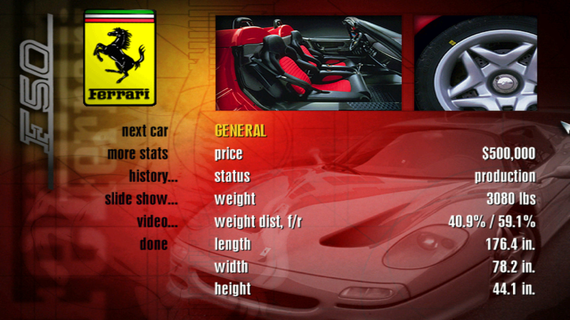 Ferrari 355 F1 - альтернатива Ferrari 512 TR из первой части, оба авто очень схожи. Приставка F1 означает, что авто оснащен КПП от формулы 1 (частично).