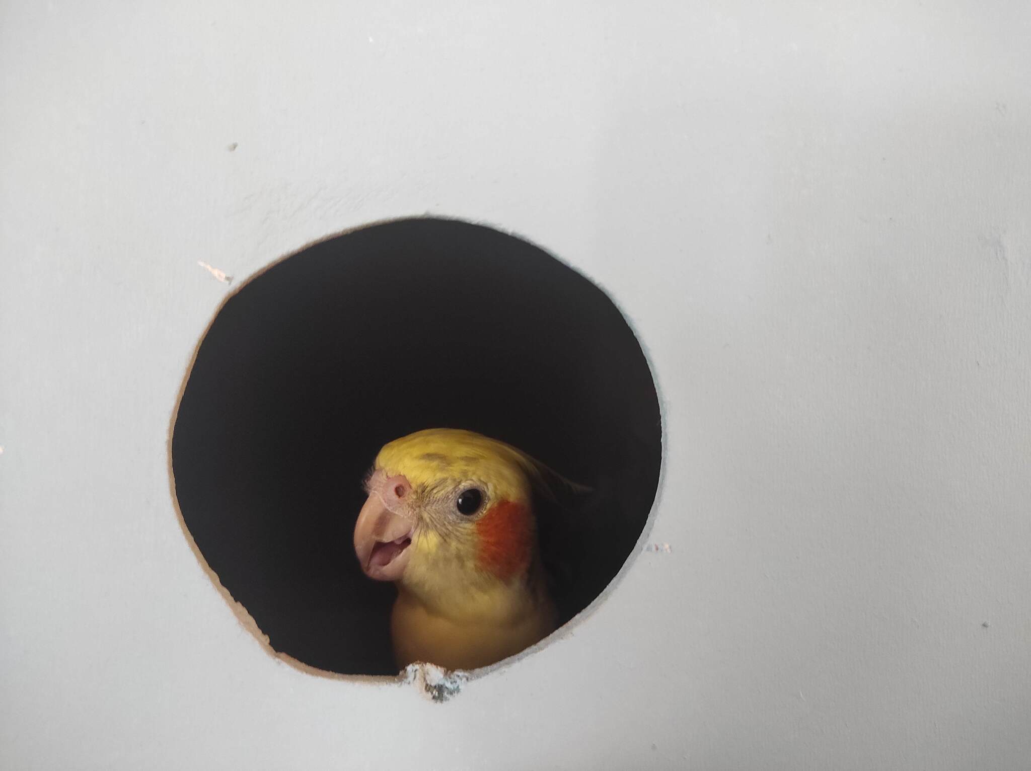 У одноклассницы так было. Дома весь потолок и обои были ободраны клювом, и какахи в неожиданных местах.