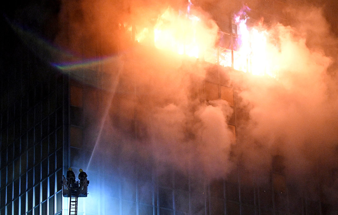 Пожарные тушат пламя, охватившее небоскреб в Загребе. В здании раньше располагалось большинство хорватских медиакомпаний.//Фото: AP/ТАСС