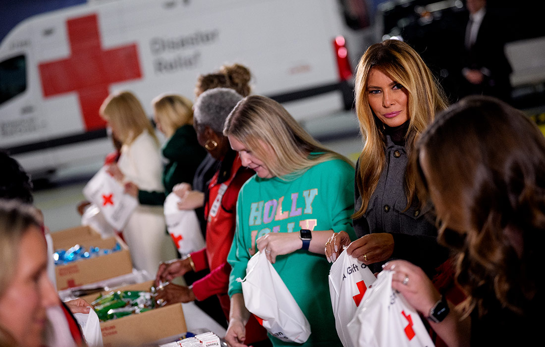 Первая леди США Мелания Трамп проводит мероприятие Красного Креста с супругами военнослужащих на военной базе Эндрюс//Фото: Andrew Harnik/Getty Images