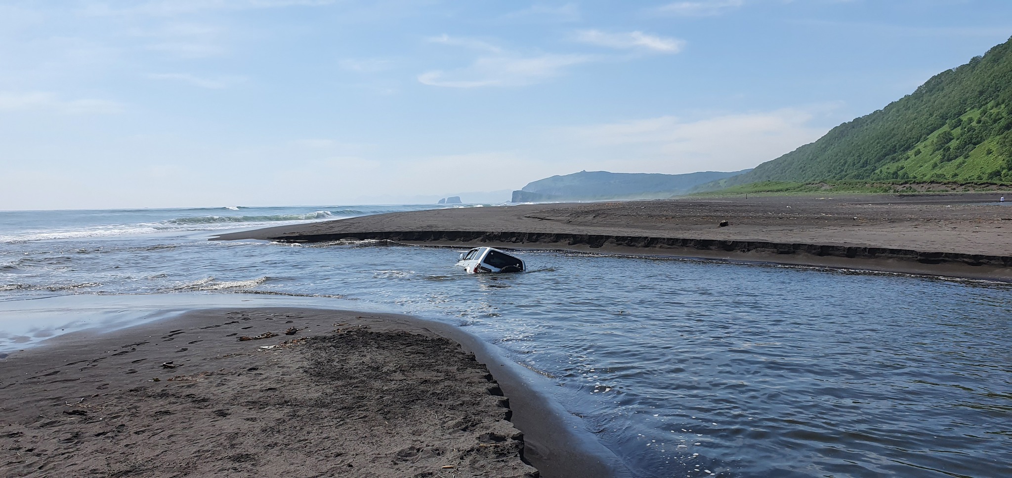 Тут он просто поплыл по отмели в устье, а прыгают только (нерка, кижучь) некоторые виды лосося уже в верховьях рек