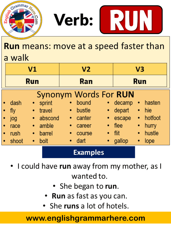 Я даже добавлю, что это ещё не все варианты, синонимов вообще можно выше крыши насобирать: https://thesaurus.plus/synonyms/run