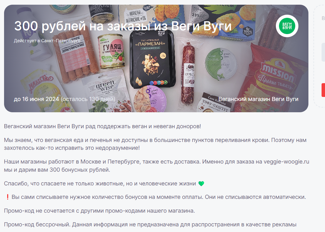 ZiPAnarhia Промокод в Веги Вуги 1 год назад Добрый день! Может быть кому то нужен промокод "tawsdo" дял сайта Веги Вуги Промокод Халява Веганы Москва Санкт-Петербург Скриншот 1 Ещё 0